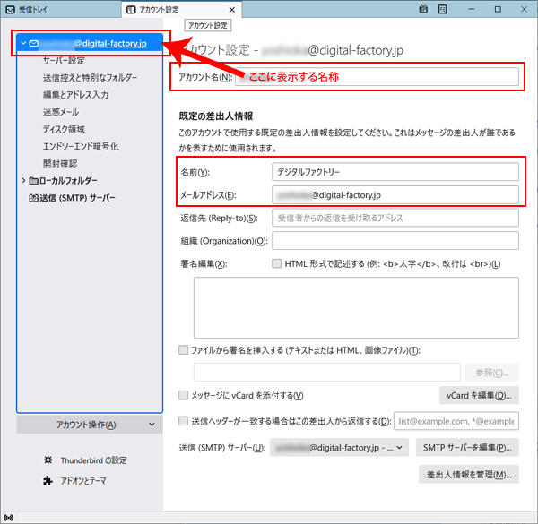 下記の説明は、Windows版 Mozilla Thunderbird91 メールの設定変更の手順です。